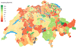 die Vergütung von Solarstrom nicht einem funktionierendem Markt gleicht, sondern stark von der Monopol Willkür der lokalen Energieversorger geprägt ist. Denn nur so ist zu erklären, dass angewissen Orten weniger als 4 Rp pro kWh vergütet werden, während andere Orte für das gleiche Produkt über 20 Rp vergüten.